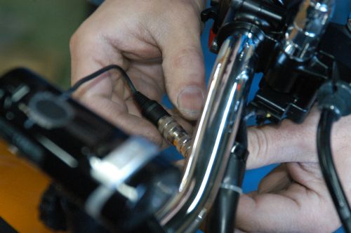 配線はタンク下を通りカメラを設置するハンドルバー付近まで障害物をよけて通していきます。